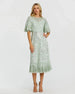 Enhance your elegance with the Flounce Sleeve Midi Dress. The illusion high neckline adds a touch of allure, while the beaded waist detail accentuates your figure beautifully. Perfect for any special occasion, this midi dress offers a harmonious blend of style and grace.